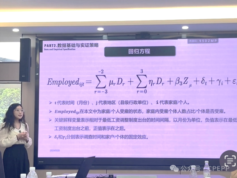 上海大学经济学院本科生张温雅汇报了《最低工资与城镇居民受雇概率:基于个体月度数据的经验证据》一文,利用2010-2014年城镇居民住户及个体月度数据以及县级层面最低工资水平数据,考察最低工资对居民受雇概率的影响。文章指出,最低工资短期内加剧了城镇受雇个体的不受雇风险,且存在“涟漪效应”。